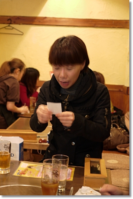 人数が多かったので、占いは5人だけ。ジャンケンをしたところ1発で勝敗確定・・・私は見事な負け組みでした(ToT)