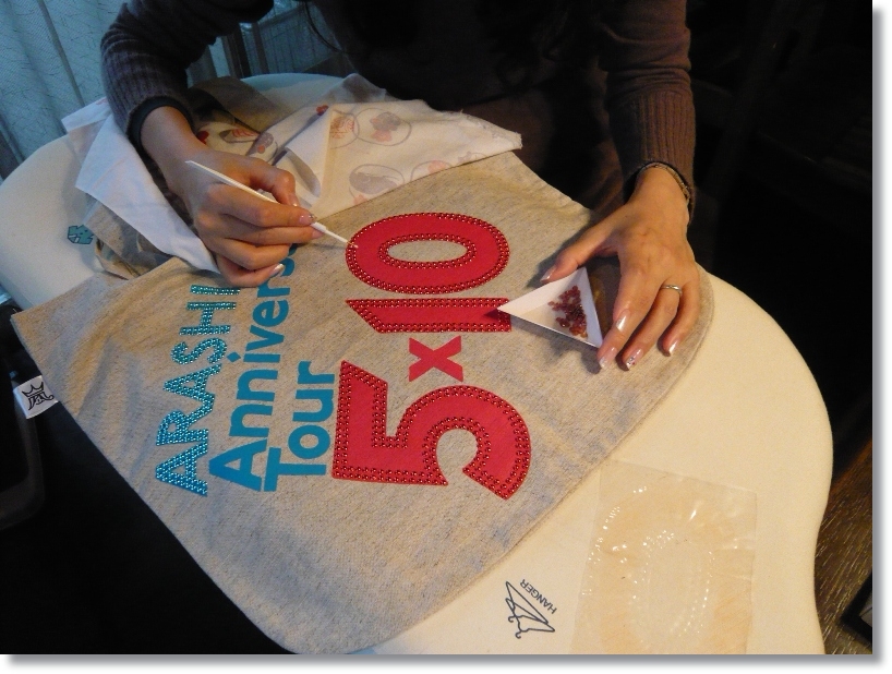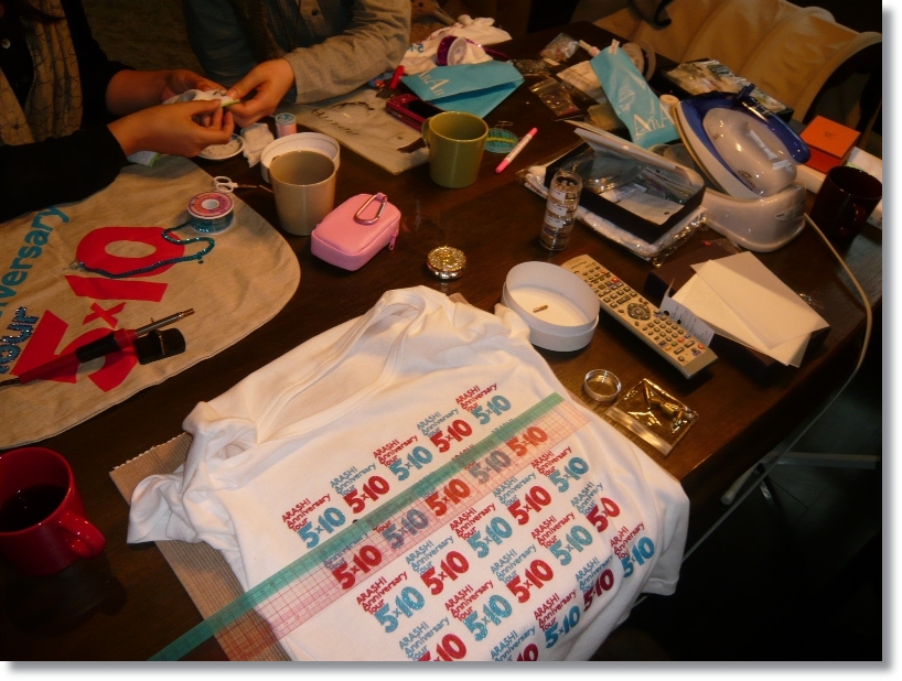 という事で事前の準備も気合を入れました^m^国立の時にGetしたツアーTとエコバックをruipoさんのお家に集まって、キラキラにデコ